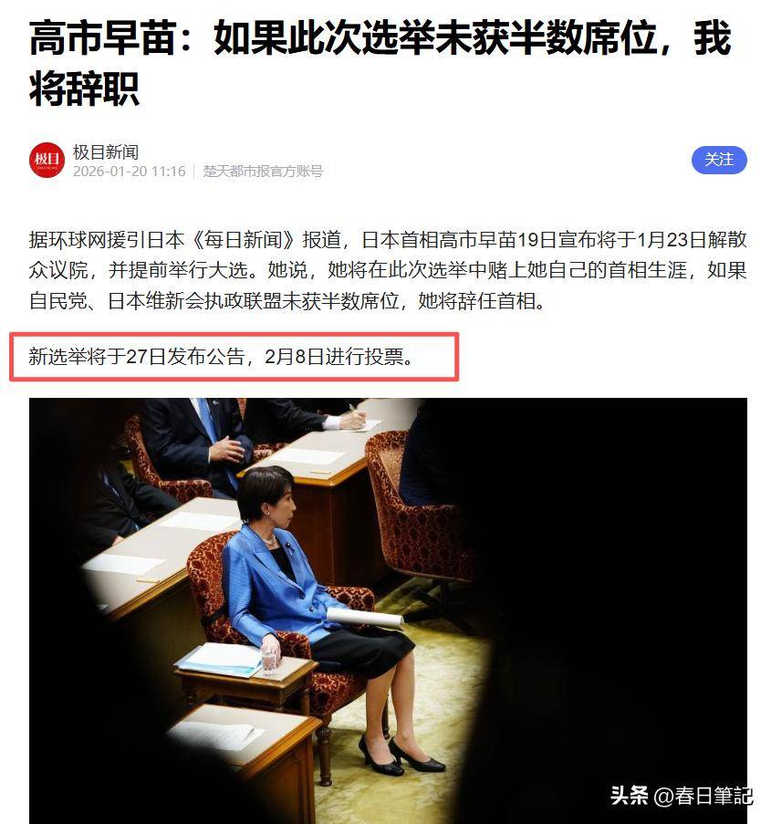刚刚上任不到四个月的高市早苗,突然宣布解散众议院,掀起了一场“赌上政治生命”的选战。